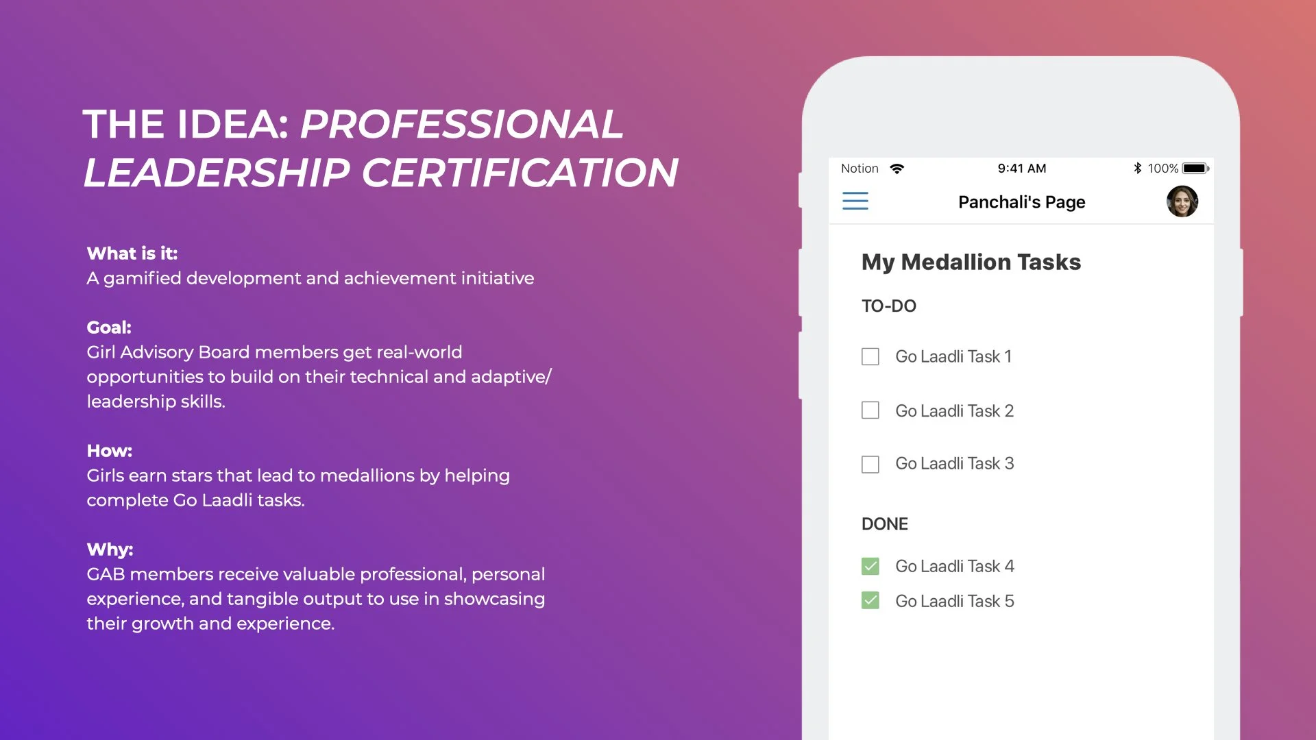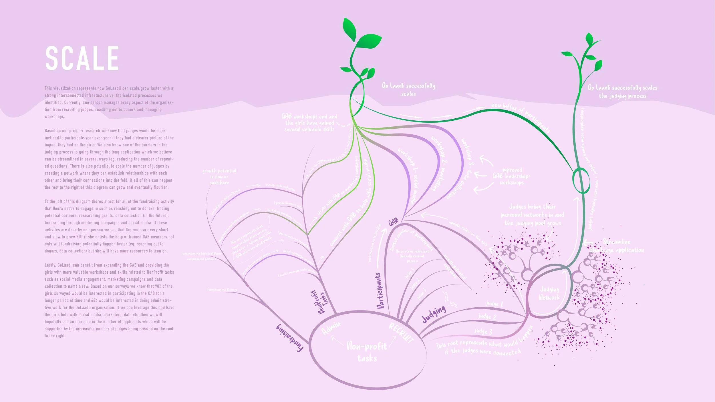 We took a short, medium/long-term view of the strategies that GoLaadli should consider in order to form a resilient bedrock that allows the organization to achieve the objectives that Heera has. We offer immediate next steps that aim to free up capacity and streamline the current judging process. Looking deeper, we also outline and prototype how the Girl Advisory Board can be expanded and strengthened; doing so will create tangible outcomes that serve to improve leadership skills as well as help alleviate some of the administrative burdens that Heera currently faces.