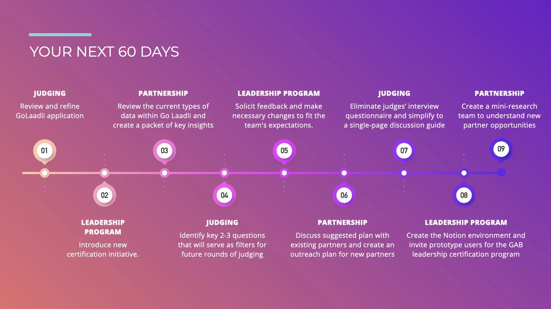 GoLaadli is an organization aimed at empowering young women to become leaders, problem solvers, and change-makers in their communities. Their founder, Heera Sharma, has several objectives to scale, expand to the US, achieve financial sustainability, and explore the viability of data monetization; the opportunity has turned into a conversation about prioritization and thoughtful foundation building. How can GoLaadli grow in a responsible and strategic way that sets them up for long-term success and a future based on value-driven revenue? This project presents findings and recommendations that the GoLaadli team has built over several months of research and design thinking. The solution is aimed at leveraging and expanding GoLaadli’s strengths while also building the foundation necessary to support the founder’s long-term goals. At the beginning of this project, the founder came to us with a few challenges listed below: