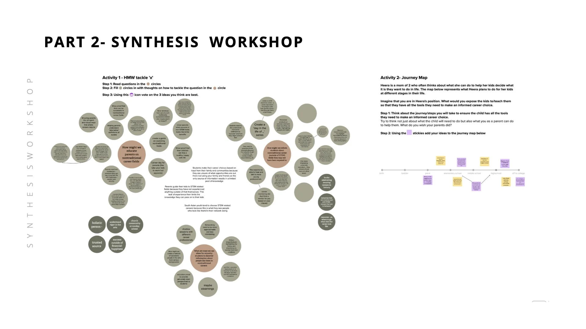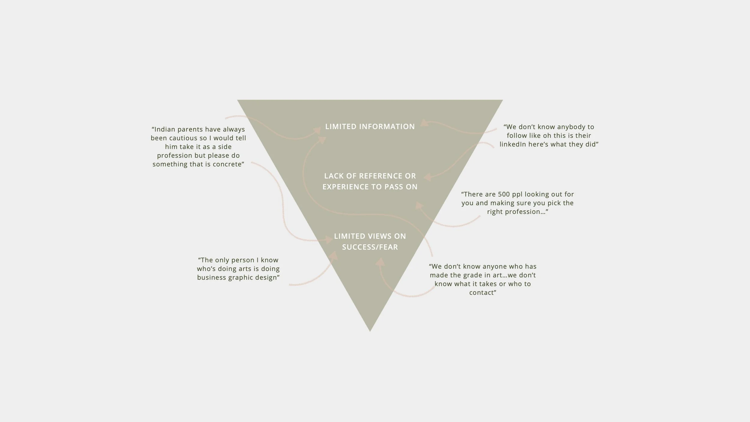 I started my research by asking the question, why aren’t South Asians participating in the arts? To answer my question, I first needed to uncover and understand people’s current decision-making process and who and what in their life is influencing their current career choices. This consisted of