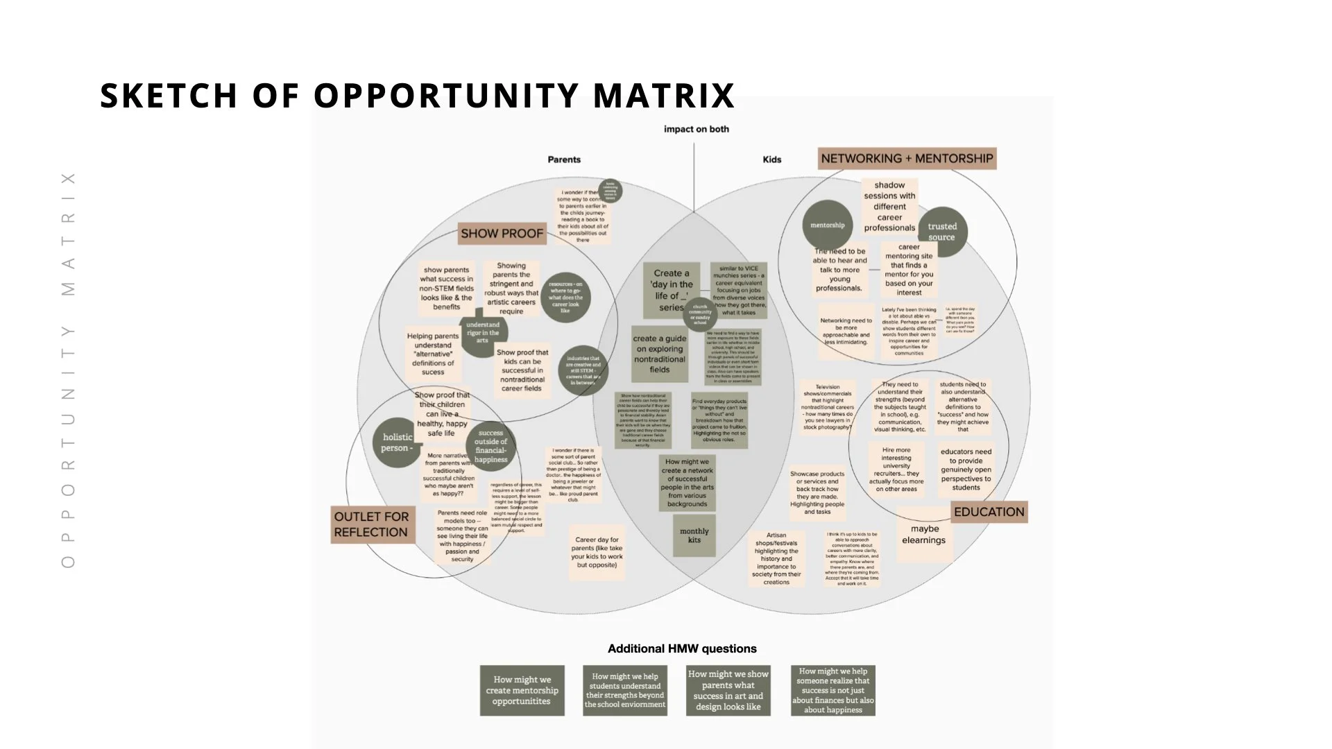 After several workshops around the themes listed above, I was able to synthesize my research down to 4 key opportunity areas that would influence my design concepts.