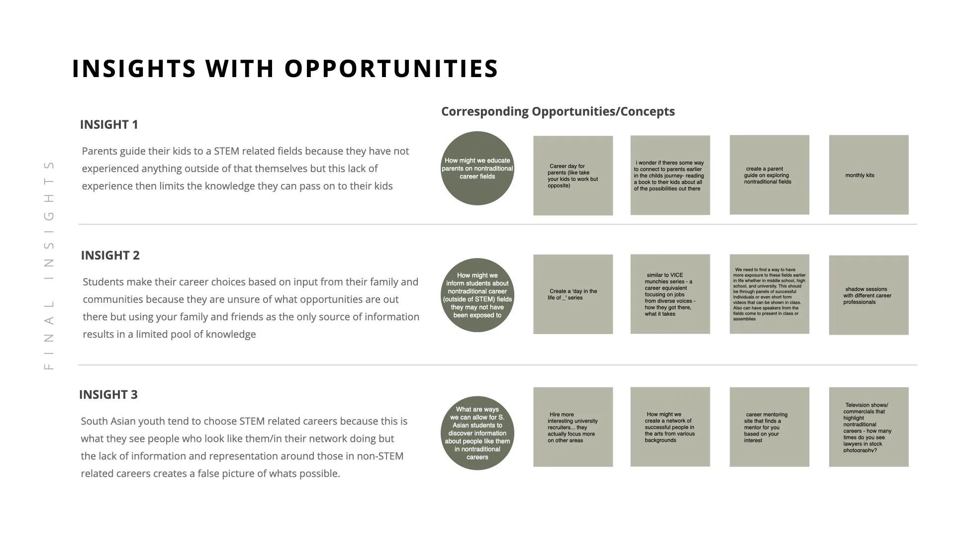 Three key themes started to emerge after my initial rounds of interviews and synthesis